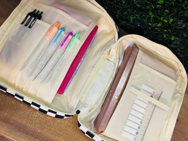 Keep your faith essentials organized and beautiful with our quilted Bible cover. Designed with a soft, fantic exterior and gold zipper detail, this cover opens to reveal multiple storage compartments perfect for your Bible, notebook, pens, and writing accessories. Each pocket is thoughtfully placed to keep everything neat and easy to reach—ideal for church, Bible study, or quiet time at home.