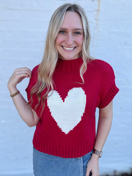 Chunky Knit Heart Top with Mock Neck Detail