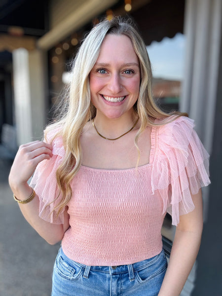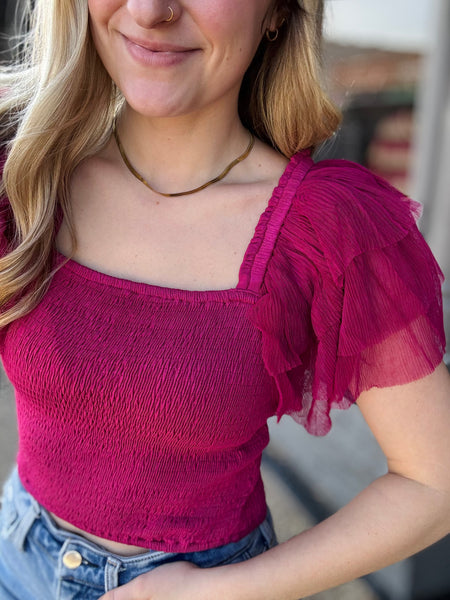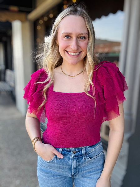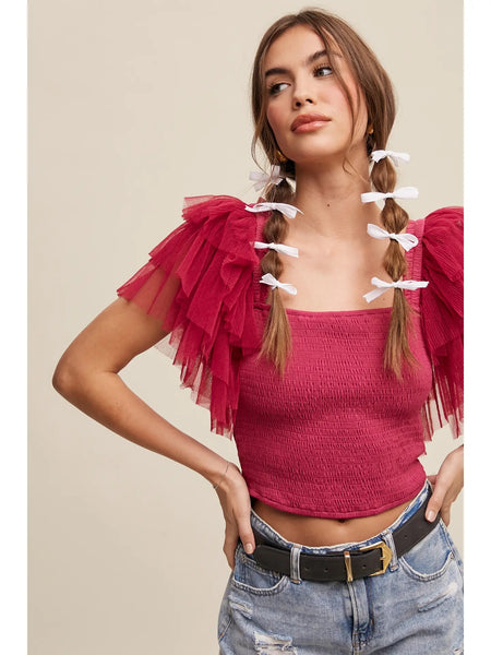 Statement Tulle Ruffle Sleeve Top