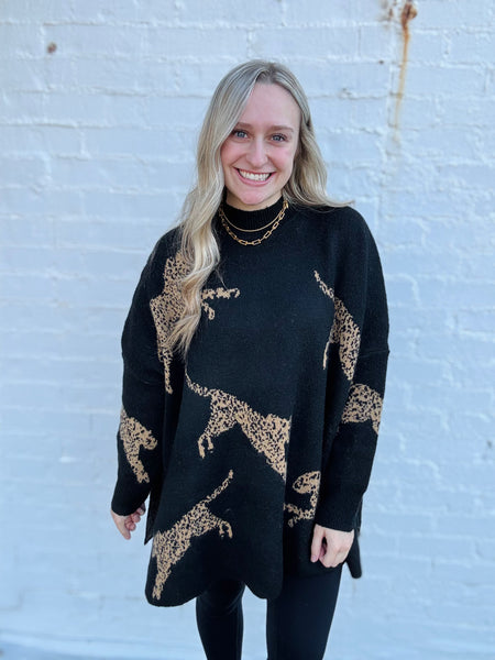 Cheetah Oversized Knit Mock Neck Sweater Top