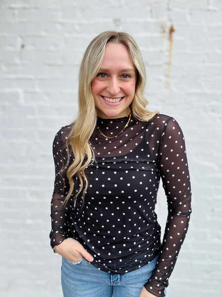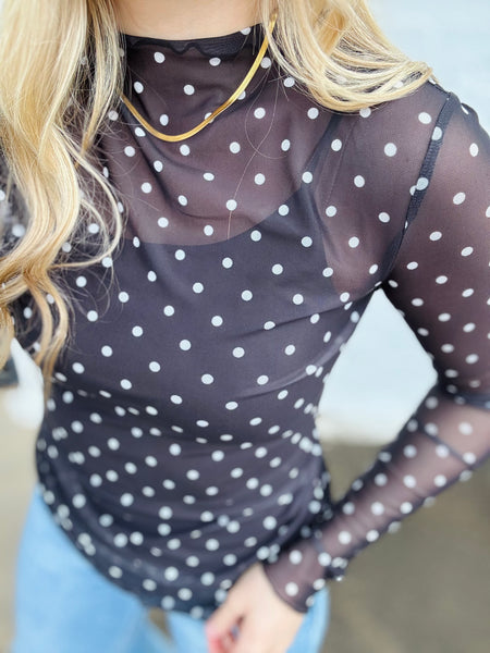 Polka Dot Mesh Long Sleeve Top